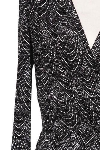 | Details | Jersey, metallic, Langarm, V-Ausschnitt, Motivprint |