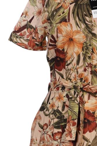 | Details | Kurzarm, Bindegürtel, Rundhals, Front Knopfleiste, Floral |