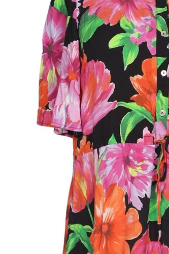 | Details | Rüschen, Kurzarm, Rundhals, Front Knopfleiste, Floral |