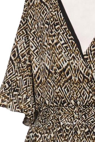 | Details | Chiffon, Kurzarm, V-Ausschnitt, Gummizug/Tunnelzug, Motivprint |