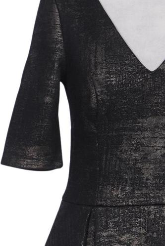 | Details | metallic, Kurzarm, V-Ausschnitt, Reißverschluss/Knöpfe hinten, Einfarbig |