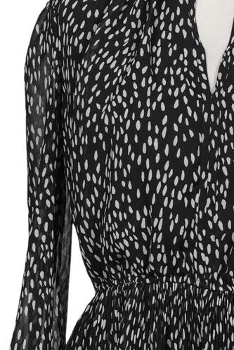 | Details | Chiffon, Langarm, V-Ausschnitt, Gummizug/Tunnelzug, Punkte |
