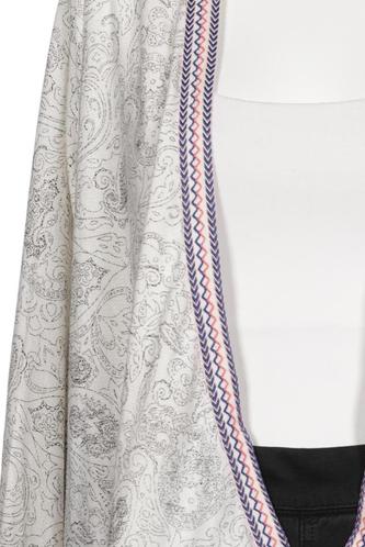 | Details | Fransen, Grobstrick, Langarm, verschlusslos, Paisley |
