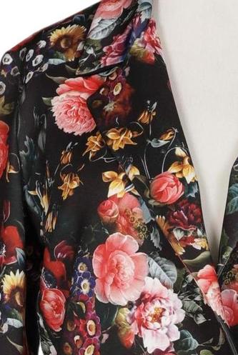 | Details | Satin, Langarm, V-Ausschnitt, Front Knopfleiste, Floral |