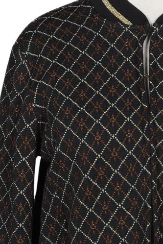 | Details | Grobstrick, Langarm, Rundhals, Front Reißverschluss, Rauten |