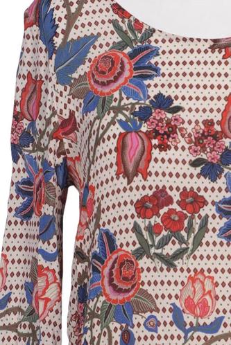 | Details | Jersey, Rüschen, Dreiviertelarm, Rundhals, verschlusslos, Floral |