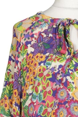 | Details | Satin, Langarm, V-Ausschnitt, verschlusslos, Floral |
