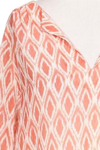 | Details | Chiffon, Langarm, V-Ausschnitt, verschlusslos, Rauten |