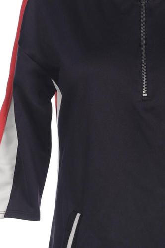 | Details | Sweat, Dreiviertelarm, Rundhals, Front Reißverschluss, Streifen |