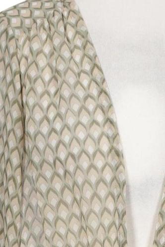 | Details | Chiffon, Langarm, Bindegürtel, V-Ausschnitt, verschlusslos, Gummizug/Tunnelzug, Motivprint |