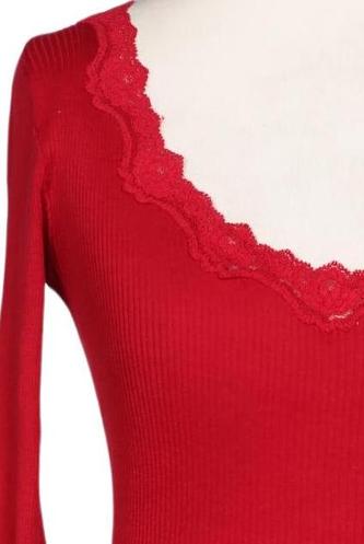 | Details | Jersey, Spitze, Langarm, V-Ausschnitt, Einfarbig |