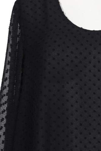 | Details | Chiffon, Langarm, Rundhals, verschlusslos, Punkte |