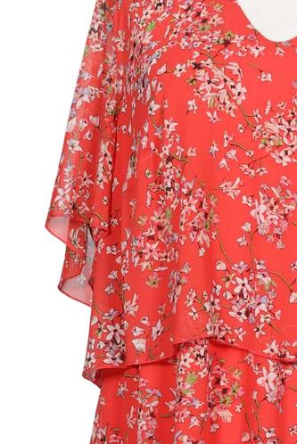 | Details | Rüschen, Kurzarm, V-Ausschnitt, Floral |