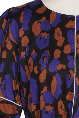 | Details | Satin, Kurzarm, Bindegürtel, Rundhals, verschlusslos, Motivprint |