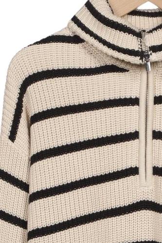| Details | Grobstrick, Langarm, Rollkragen, Streifen |