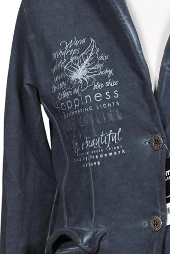 | Details | Sweat, Langarm, V-Ausschnitt, Front Knopfleiste, Motivprint |