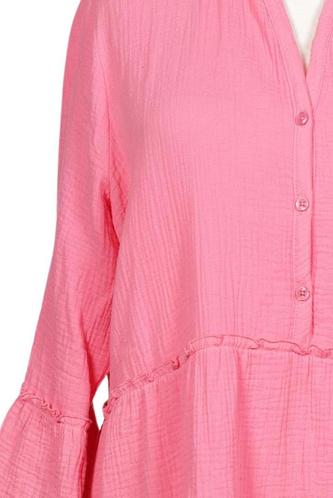 | Details | Rüschen, Dreiviertelarm, V-Ausschnitt, Front Knopfleiste, Einfarbig |
