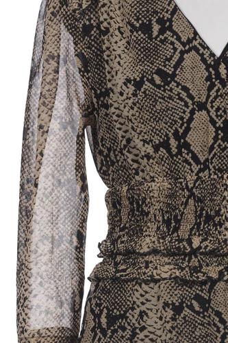 | Details | Rüschen, Chiffon, Dreiviertelarm, V-Ausschnitt, Motivprint |