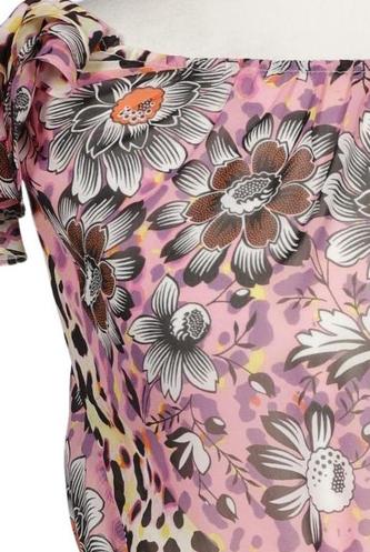 | Details | Rüschen, Chiffon, Kurzarm, Bindegürtel, V-Ausschnitt, verschlusslos, Floral, Leopard |