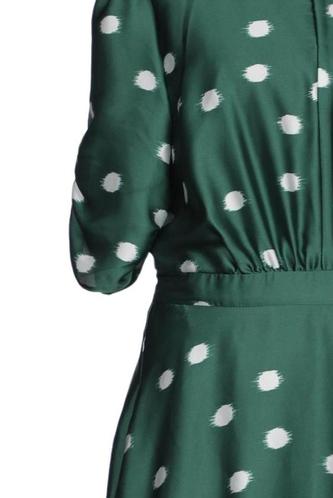 | Details | Satin, Kurzarm, Rundhals, Reißverschluss/Knöpfe hinten, Punkte |