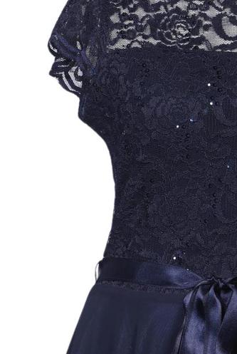 | Details | Satin, Pailletten, Spitze, Kurzarm, Bindegürtel, Rundhals, Reißverschluss/Knöpfe hinten, Einfarbig |