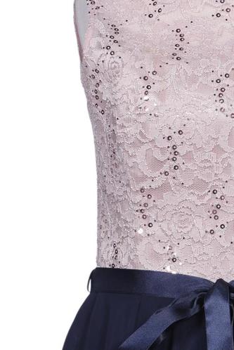 | Details | Spitze, Chiffon, ärmellos, Bindegürtel, Rundhals, Reißverschluss/Knöpfe hinten, Floral |