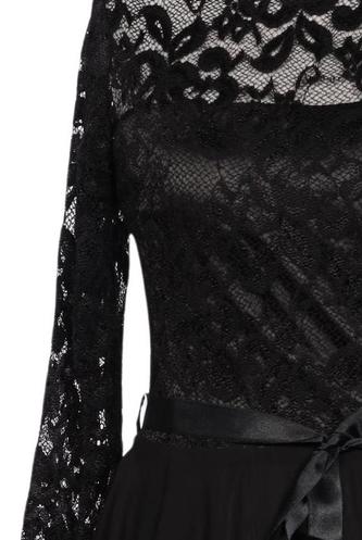 | Details | Satin, Spitze, Langarm, Bindegürtel, Rundhals, Reißverschluss/Knöpfe hinten, Einfarbig |