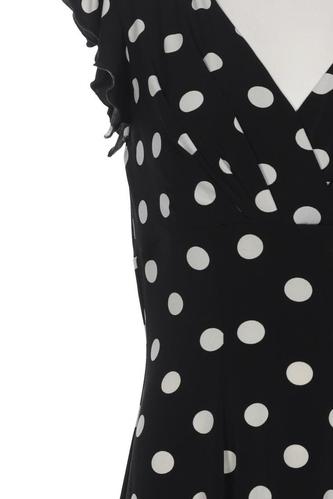 | Details | Jersey, Rüschen, Kurzarm, V-Ausschnitt, Punkte |