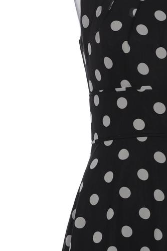 | Details | Chiffon, ärmellos, Rundhals, Reißverschluss/Knöpfe hinten, Punkte |