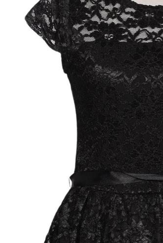 | Details | Spitze, Kurzarm, Bindegürtel, Rundhals, Reißverschluss/Knöpfe hinten, Floral |