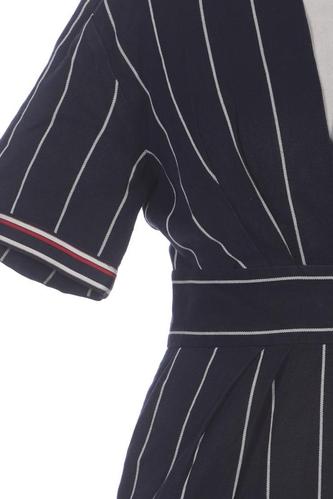 | Details | Kurzarm, Bindegürtel, V-Ausschnitt, Reißverschluss/Knöpfe hinten, Streifen |