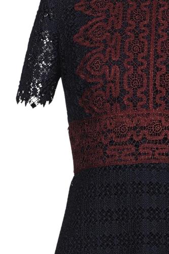 | Details | Spitze, Kurzarm, Rundhals, Reißverschluss/Knöpfe hinten, Floral |