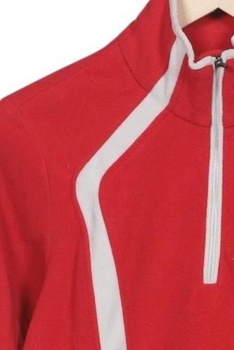 | Details | Fleece, Langarm, Rundhals, Front Reißverschluss, Markenlogo, Streifen |