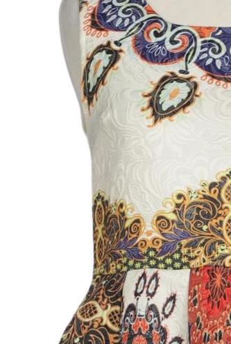 | Details | ärmellos, Rundhals, Reißverschluss/Knöpfe hinten, Floral |