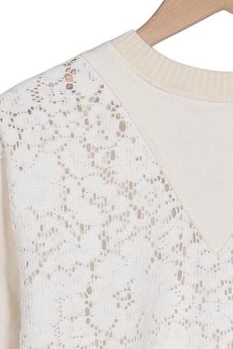 | Details | Sweat, Spitze, Langarm, Rundhals, verschlusslos, Floral |