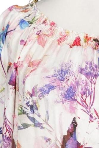 | Details | Jersey, Dreiviertelarm, Rundhals, verschlusslos, Floral |