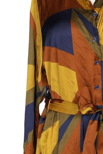 | Details | Satin, Langarm, Bindegürtel, Rundhals, Front Knopfleiste, Motivprint |