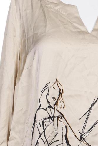 | Details | Satin, Dreiviertelarm, V-Ausschnitt, verschlusslos, Motivprint |