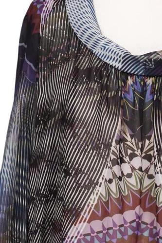| Details | Chiffon, Dreiviertelarm, Rundhals, verschlusslos, Ethno |