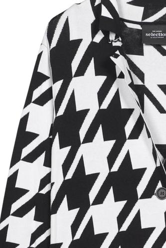 | Details | Grobstrick, Langarm, V-Ausschnitt, Front Knopfleiste, Hahnentritt |