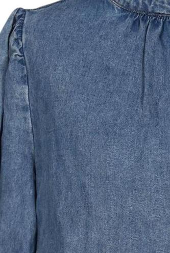 | Details | Jeans, Rüschen, Kurzarm, Rundhals, verschlusslos, Einfarbig |