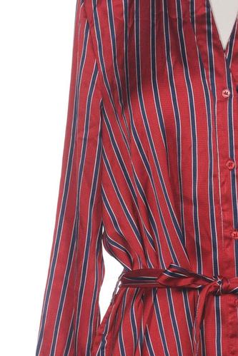 | Details | Satin, Langarm, Bindegürtel, V-Ausschnitt, Front Knopfleiste, Streifen |