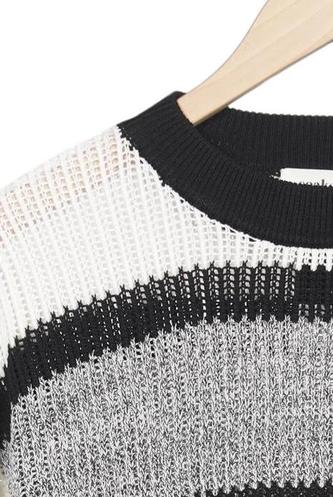 | Details | Grobstrick, Dreiviertelarm, Rundhals, Streifen |