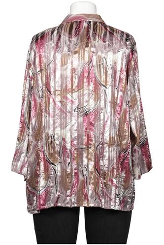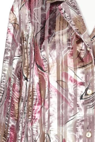 | Details | Satin, metallic, Dreiviertelarm, V-Ausschnitt, verschlusslos, Floral, Streifen |