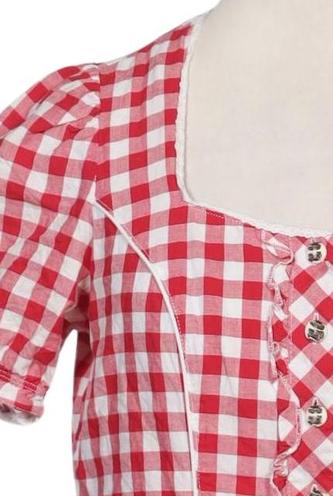 | Details | Rüschen, Kurzarm, Front Knopfleiste, Kariert |