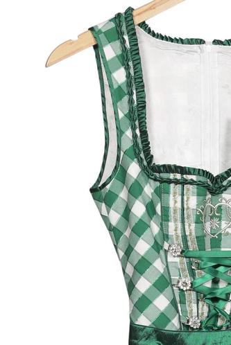 | Details | Satin, Stickerei, ärmellos, Bindegürtel, V-Ausschnitt, Reißverschluss/Knöpfe hinten, Kariert |