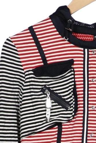 | Details | Jersey, Rüschen, Langarm, Rundhals, Gummizug/Tunnelzug, Front Reißverschluss, Streifen |