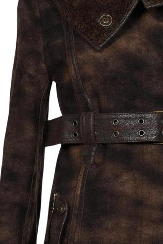 | Details | Wildlederoptik, Webpelz, Bindegürtel, Front Knopfleiste, Motivprint |