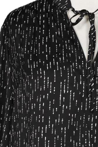 | Details | Satin, Langarm, V-Ausschnitt, verschlusslos, Motivprint |