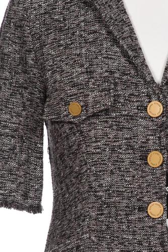| Details | Fransen, Grobstrick, Kurzarm, V-Ausschnitt, Front Knopfleiste, Hahnentritt |